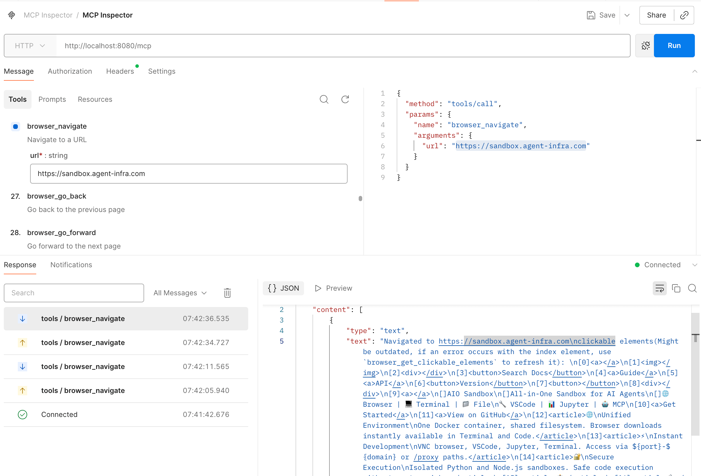 - Connection Stability: MCP connections are more stable as the container's MCP Server wraps CDP protocol and exposes HTTP interfaces